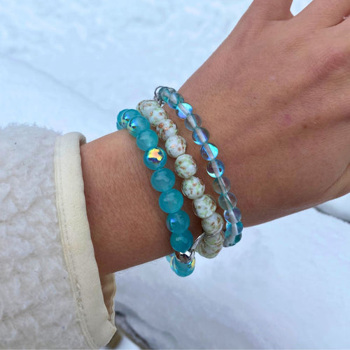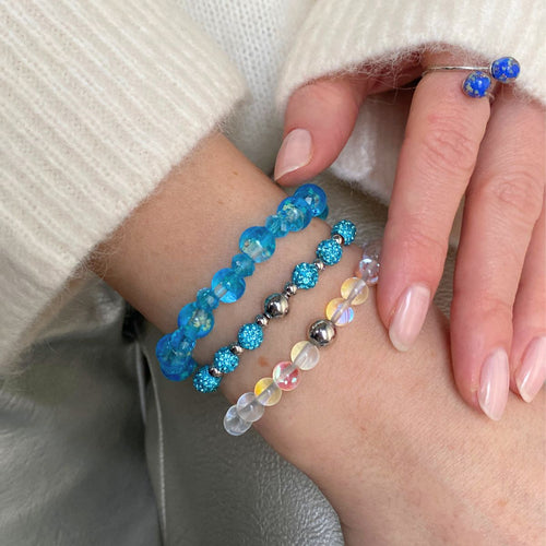Bracelet boule à neige en verre avec motif de glace aigue-marine | Firefly $82.00$51.00